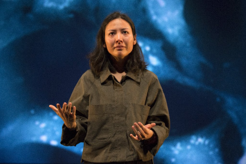 Porté admirablement par la comédienne Angélica-Kiyomi Tisseyre-Sékiné, ce récit théâtral entrelace texte et images d’archives se tissant avec la vie de cette femme hors normes. Il raconte la vitalité de corps blessés et contaminés par les tragédies de l’Histoire, toujours en lutte et en résilience.